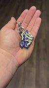 This handcrafted 3D-printed keychain captures the elegance and precision of the trade — a skeleton hand delicately gripping a pair of iridescent purple shears — while packing smart tech under the surface.